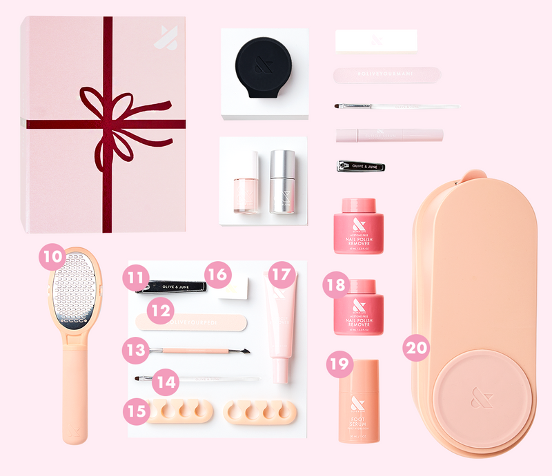Tato sada péče o nehty obsahuje vše, co mohou potřebovat pro domácí mani-pedi, včetně pufru na nehty, séra na kůžičku, nůžek na nehty, pilníku na nohy, laku na nehty dle vlastního výběru a dalších.
