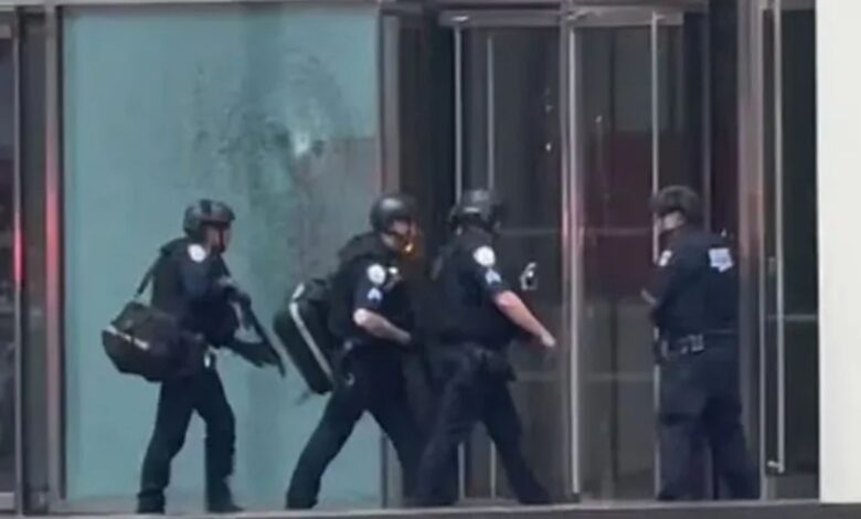Byly viděny pohotovostní lékařské jednotky spěchající do 44. patra, zatímco zprávy naznačují, že podezřelý se mohl zabarikádovat v 32. patře.