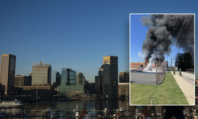 Dva podezřelí ve věku 12 a 13 let byli zatčeni v souvislosti s ohněm, což údajně způsobilo poškození více než 100 000 USD, WBFF hlásil. Obrázky zveřejněné na Facebooku motorem hasičského sboru Baltimore City 57 ukazují plameny tyčící se nad zuhelnatou hrou.
