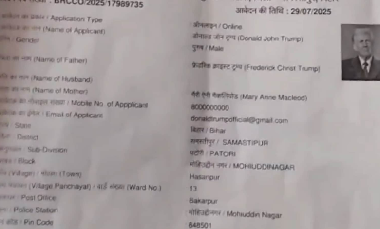 V bizarním trendu před státními volbami, „Donald Trump“, rezident vesnice Hasanpur v okrese Samastipur, požádal o osvědčení o rezidenci v Biharu.