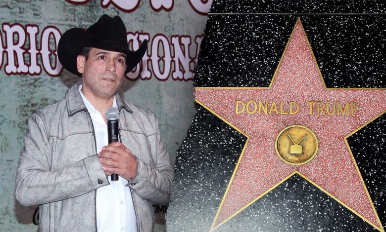 Bobby Pulido, vlevo, na snímku vedle Trumpovy hollywoodské hvězdy, vpravo. (Medios y Media/Getty Images;David Livingston/Getty Images)