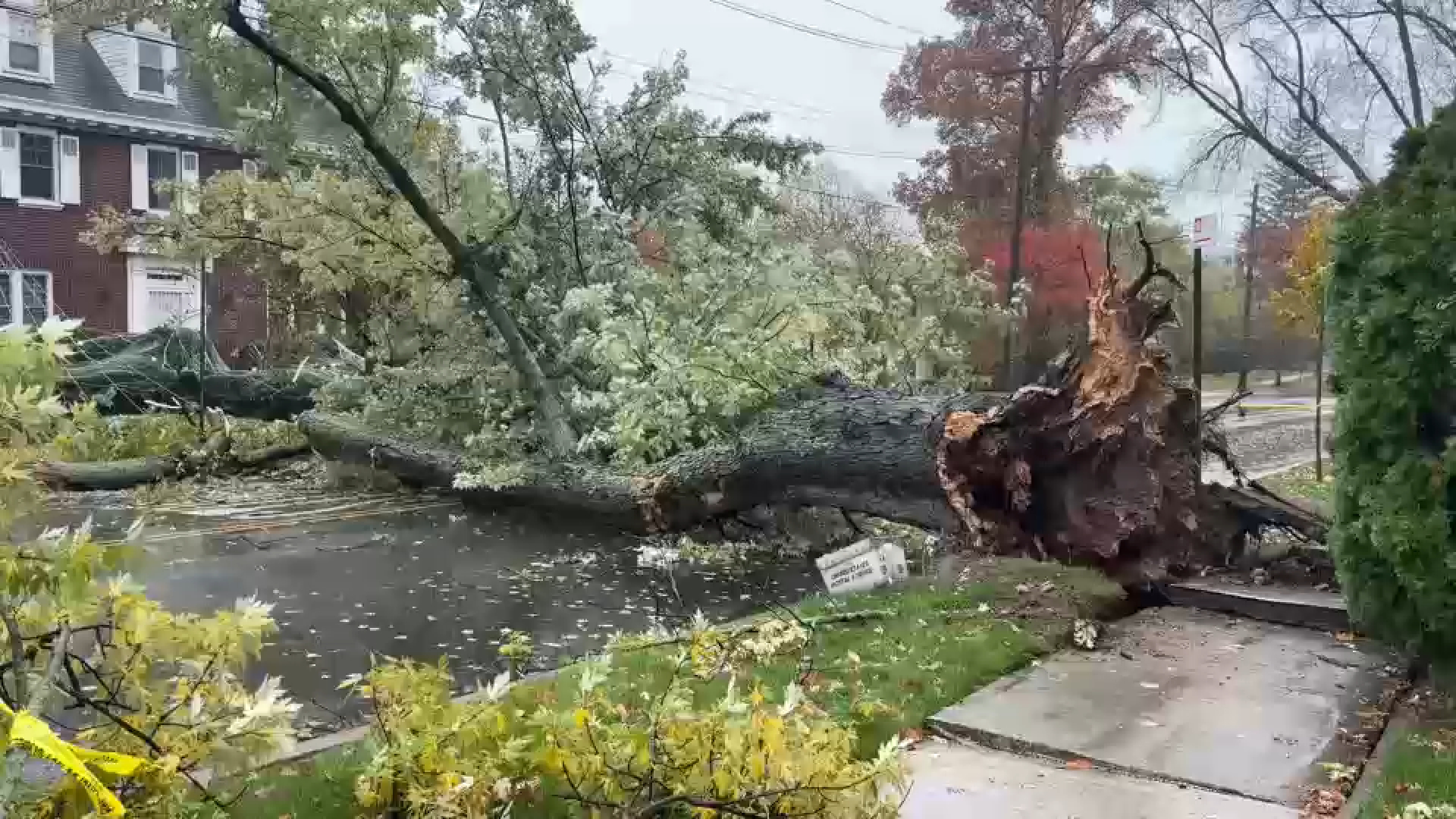 Padlý strom byl hlášen ve Flushing, Queens na 160th Street a 33. Avenue.