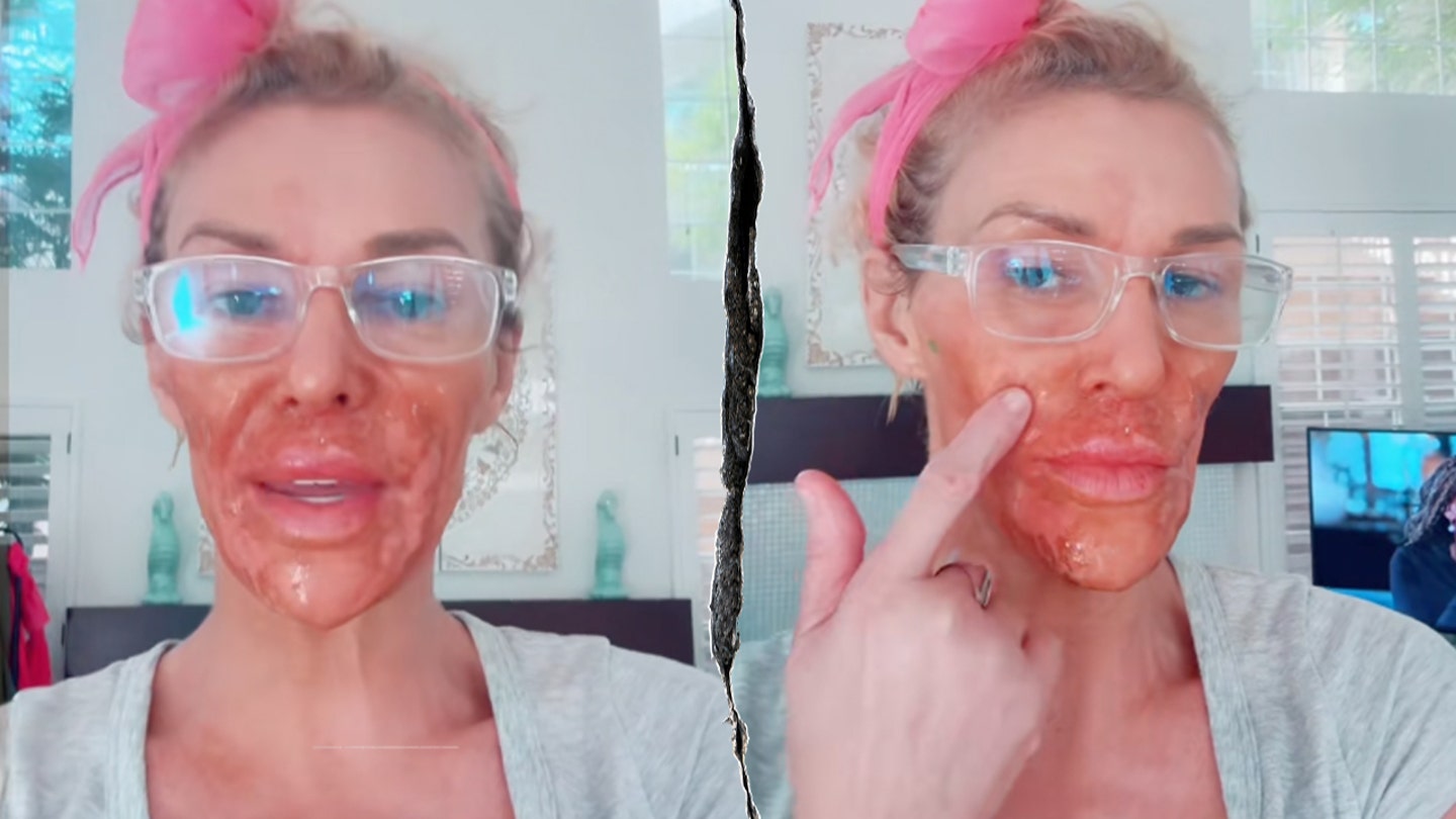 Bývalá hvězda „Real Housewives of Beverly Hills“ Brandi Glanville varuje fanoušky o léčbě kosmetiky pro kutily poté, co Nair způsobil na tváři těžké popáleniny. (Getty Images; Brandi Glanville/Tiktok)
