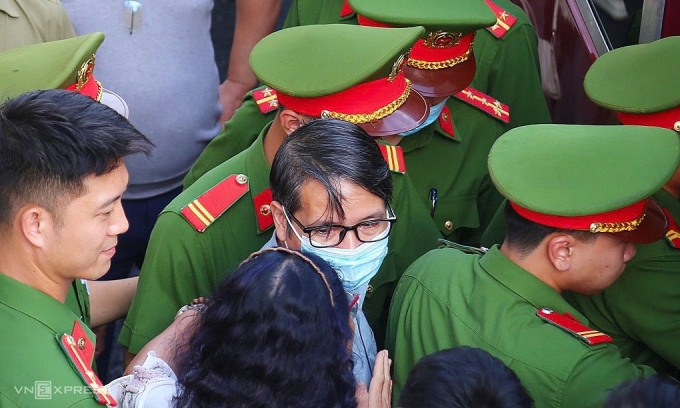 Nguyen Duy Hung, bývalý předseda představenstva skupiny Thuan, je doprovázen do Hanojského lidového soudu 18. září 2025. Foto VNEXPRESS/PHAM DU |