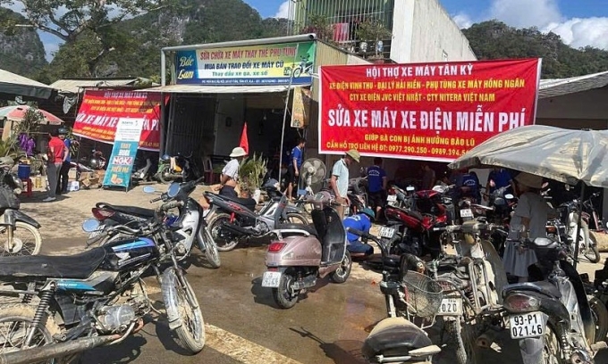 Kromě své skupiny se také připojilo několik místních prodejců, včetně Vinh Thu, Hai Hien a Hong Ngan. Zřídily mobilní opravné stanice vybavené všemi potřebnými nástroji a díly. Je pozoruhodné, že tyto workshopy poskytují motorový olej, zapalovací svíčky, vzduchové filtry a základní komponenty zcela zdarma. Pro dražší části nabízejí částečnou podporu, aby zmírnily finanční zátěž pro domácnosti postižené povodněmi.