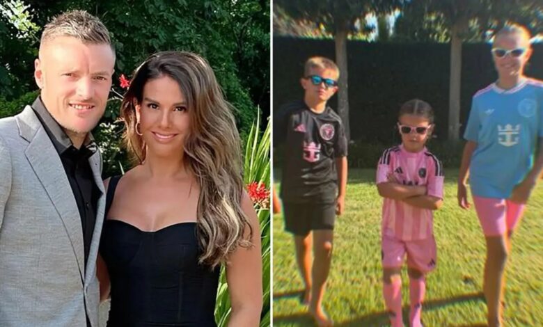 43 let Rebekah zveřejnila obrázek svých tří dětí na sobě Inter Miami košile.