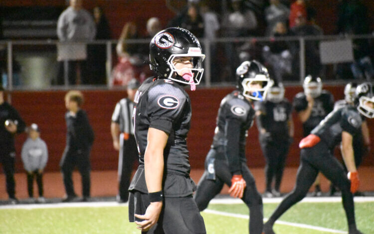 Foto souboru / Preston Byers Girard AJ Pearson se podívá napravo, než dojde k prasknutí míče během zápasu Indiánů s Polskem 10. října na stadionu Arrowhead. Indiáni a Bulldogs hrají proti sobě v Girardu podruhé za pět týdnů v pátek v regionálním semifinále divize V.