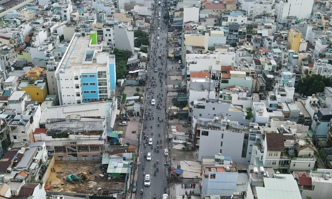 Řada obchodů na ulici Cach Mang Thang Tam nyní sedí dál vzadu poté, co předala pozemky pro linku metra 2 v Ho Či Minově Městě. Foto: VnExpress/Giang Anh