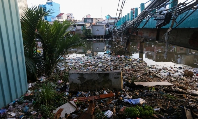 Odpadky vyplní Xuyen Tam Canal v okrese Binh Thanh, HCMC, v roce 2017. Foto: VNEXPRESS/QUYNH TRAN