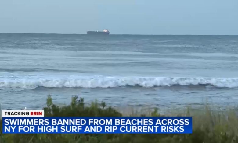 New York (WABC) – Pláže zůstávají v pátek uzavřeny, protože silné roztržení proudů z hurikánu Erin nadále vytvářejí nebezpečné podmínky.