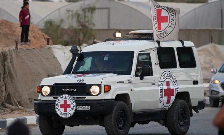 Červený kříž je pověřen, aby převezl ostatky izraelských rukojmích z Hamasu do vazby IDF. (AP Photo/Abdel Kareem Hana)