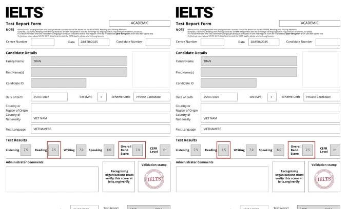„Nejdřív jsem se bála, že jde o podvod,“ řekla. Když zkontrolovala systém, viděla, že se její test z 25. prosince 2023 změnil: její skóre čtení se zvýšilo ze 7,5 na 8,0, čímž se její celkové pásmo zvýšilo ze 7,0 na 7,5.
