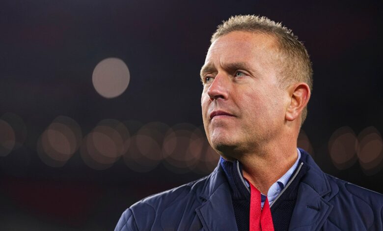 Kirk Herbstreit se dívá z vedlejších her před hrou „čtvrteční noční fotbal“ na Amazon Prime ve FedEx Field 5. října 2023 v Landoveru v Marylandu. (Cooper Neill/Getty Images)