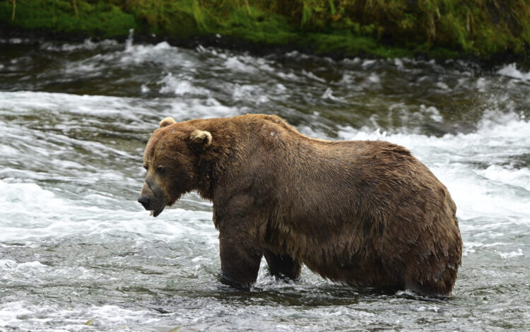 V štíhlejších letech se nejtěžší medvědí žokej pro nejlepší rybářská místa v Brooks Falls, kde se losos sbíhal v úzkém místě a skočil z vody, když bojovali proti proudu, aby se vynořili.