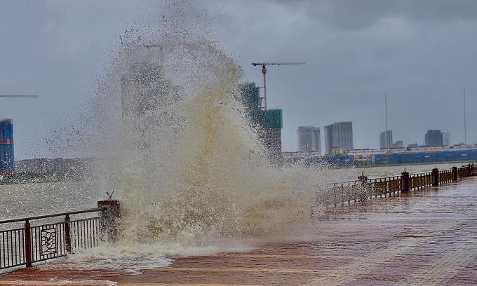 Vlny až šest metrů vysoké udeřily na nábřeží řeky Han v Da Nangu, zaplavily ulici Nhu Nguyet a roztrhaly chodníky, když se Bouře Fengshen blížila k vietnamskému pobřeží.