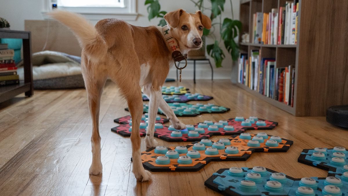 Federico RossanoDocent kognitivní vědy na University of California v San Diegu používá knoflíky – řadu tlačítek, která při stisknutí přehrávají zaznamenané slovo – k prozkoumání lingvistické schopnosti našich psích společníků.