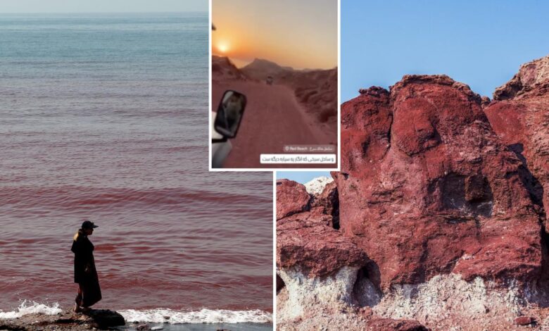 Ostrov Hormuz u Íránu v Perském zálivu se po lijáku, který zaplavil blízkovýchodní ostrov s příznačným názvem Červená pláž, proměnil v temně karmínové, dramatické záběry.