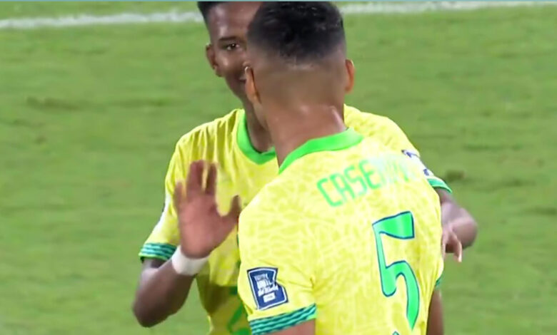 Zdálo se, že Casemiro varuje nad Estevao během Brazílie 3-0 vítězství nad ChileKredit: https://x.com/nino12x