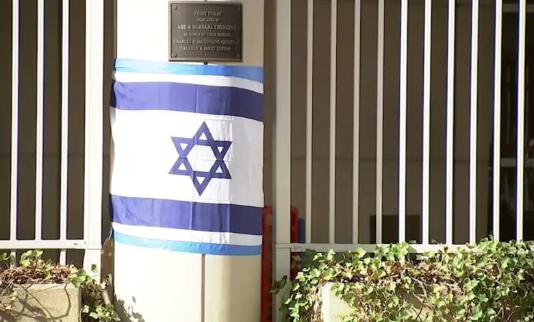 A ješiva v Gravesendu byla označena svastikou potřísněné červenou barvou. Nyní je pokryta izraelskými vlajkami.