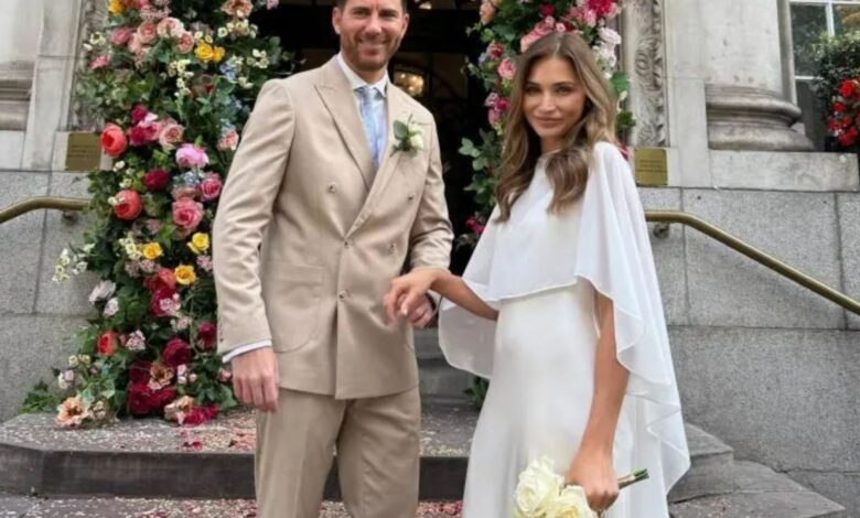 Kat a její nyní manžel svázali uzel v obřadu „intimního a nízkého klíče“ obklopeného blízkou rodinou a pak šli na oběd v 50 Cheyne, „který se cítil naprosto magicky“, podle nevěsty.