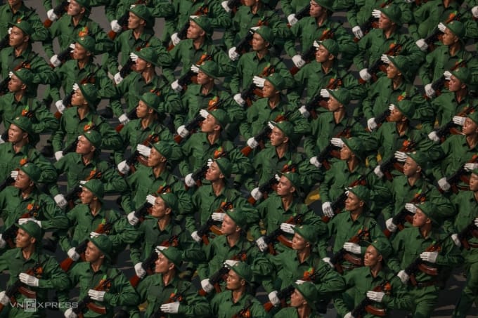 Bojové trysky, které spadly tepelné pasti ve vzduchu, vojáci pochodují přes moře lidí, „sto lidí jako jedna“ výkonnost ozbrojených sil je některými vrcholy 50. výročí sjednocení Vietnamu 30. dubna.