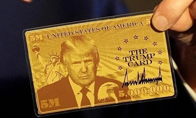 Program zlatých karet je Trumpovou verzí jeho protiváhy, která má vydělávat peníze pro americké ministerstvo financí stejným způsobem, jakým prezident, bývalý newyorský podnikatel a moderátor televizní reality show, řekl, že jeho tarifní program úspěšně funguje.