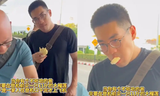 Video zveřejněné na Douyinu ukázalo, že se rodina schoulila před letištěm a loupala otevřené plastové sáčky plněné Durian. Li bylo vidět, jak roubí, zatímco jeho otec nadšeně přitiskl.