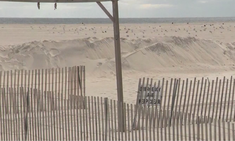 Úředníci Jones Beach zvyšují přípravy, umístí bariéry, připravují nouzové vybavení a nasazují 500 pytlů s pískem kolem klíčových budov, aby se bránili proti očekávanému nárůstu bouří.