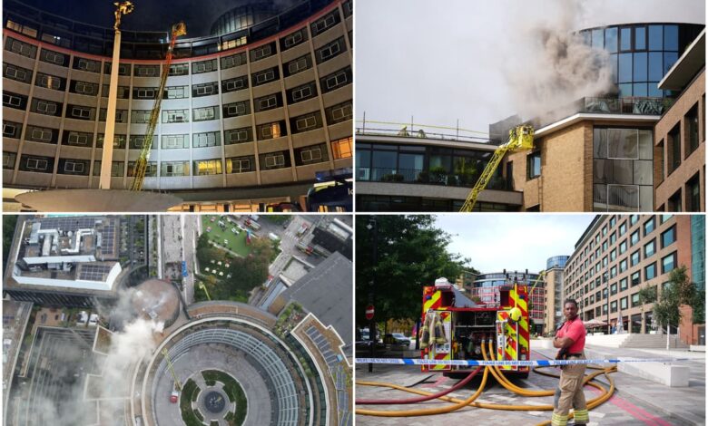 Oheň White City: 100 hasičů bitvy „Komplexní oheň“, když Blaze trhá přes bývalé velitelství BBC v západním Londýně