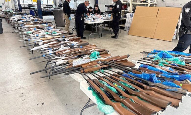 Sekundární kontrola odhalila falešné přihrádky plné arzenálu: zhruba 400 střelných zbraní různých ráží, velkokapacitní zásobníky a tisíce nábojů.