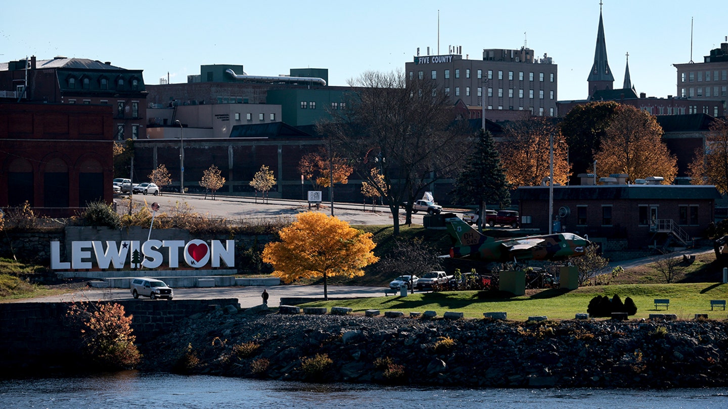 Městský znak Lewiston, Maine, je 27. října 2023 vidět se srdcem. (ANGELA WEISS / AFP přes Getty Images)