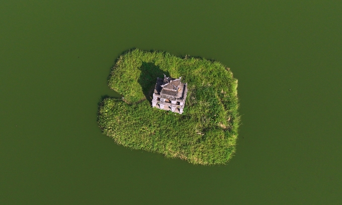 Letecký pohled na Želví věž u jezera Hoan Kiem, Hanoj. Foto VnExpress/Ngoc Thanh
