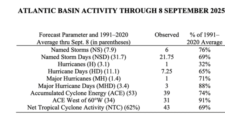 Od 16. září je to více než 18 po sobě jdoucích dnů bez jediného pojmenovaného bouře nebo aktivního tropického systému v povodí, což je bezprecedentní pauza během toho, co je klimatologický vrchol Hurikánová sezóna v moderní satelitní éře.