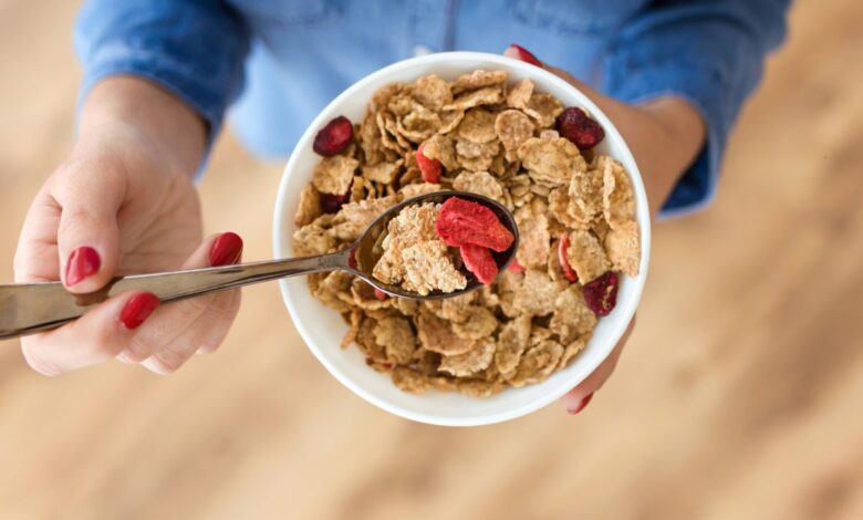 „Pokud máte poměrně nízko vlákninové snídaňové cereálie, vyměňte si na cereálie s vyššími vlákny, ať už se jedná o oves nebo pšeničnou obilovinu, jako je Weetabix nebo Bran vločky,“ doporučuje paní Sandersová. „Tím se okamžitě zvýší příjem vlákna o hodně.“