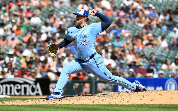 FILE – Nadhazovač Toronto Blue Jays Justin Bruihl hází v osmé směně baseballového zápasu proti Detroit Tigers, 27. července 2025, v Detroitu. (AP Photo/Jose Juarez, soubor)