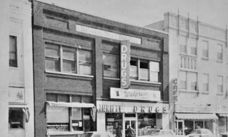 39/46: Tato budova v Seventh and Laurel, stále známá památka v Brainerdu, byla v letech 1909 až 1927 domovem Státní banky občanů, kdy se banka přestěhovala do ubikací přes ulici. Tento snímek byl pořízen v roce 1913. Zdroj: Brainerd Minnesota 1871 – 1971. Reprodukováno z vydání stého výročí Brainerd Daily Dispatch.