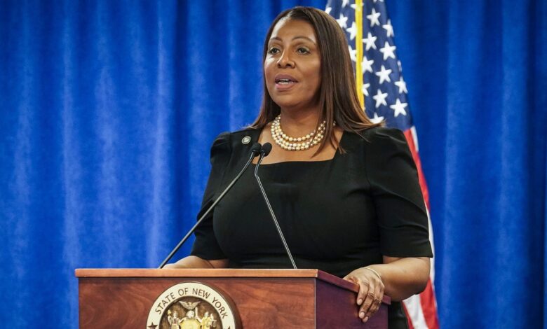 Mluvčí Jamese nazval předvolání „Zbraň spravedlnosti“, vyvolávající kritiku Trump, který Trump popsal její případ proti tomu, který vyústil v trest půl miliardy dolarů.