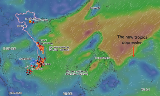 Hoang Duc Cuong, zástupce ředitele vietnamské meteorologické a hydrologické správy pod ministerstvem zemědělství a rozvoje venkova, na čtvrtečním tiskovém brífinku řekl, že deprese je asi 1000 km východně od centrálních Filipín a pomalu se pohybuje směrem na severozápad.