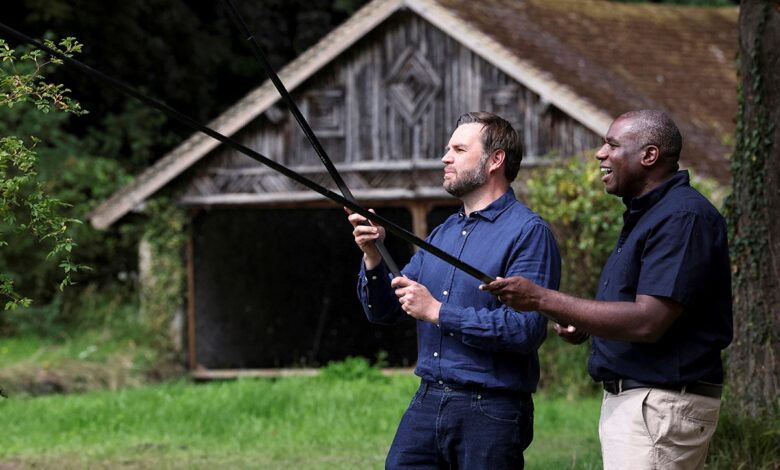 Britský ministr zahraničí David Lammy Fishes v Kentu v Anglii s americkým viceprezidentem JD Vance 8. srpna. (Suzanne Plunkett/bazén fotografie přes AP)