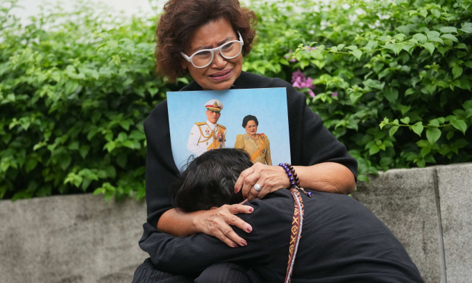| Thajci truchlí, když drží portrét thajské královny matky Sirikit v Bangkoku, Thajsko, 25. října 2025. Foto: AP |