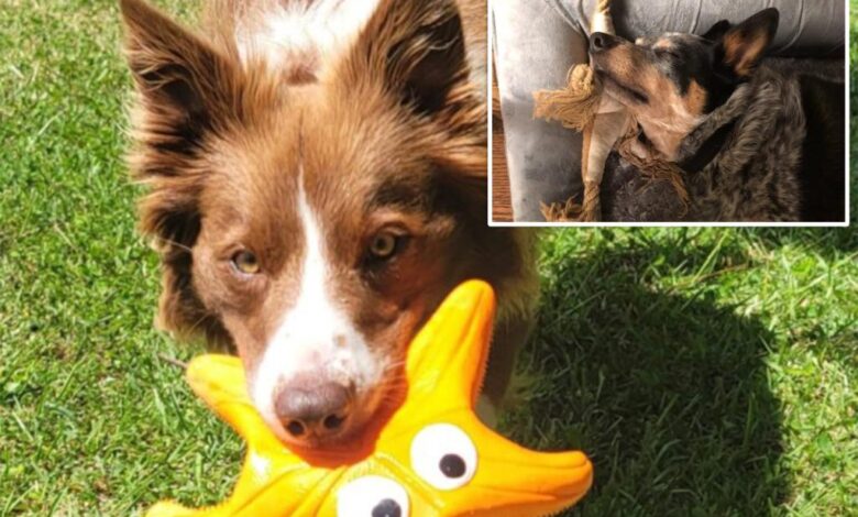 Fotografie zveřejněné se studií ukazují The Canine Einsteins v akci. Gaia, hraniční kolie, se zašklebila, zatímco pózovala s horou hraček.