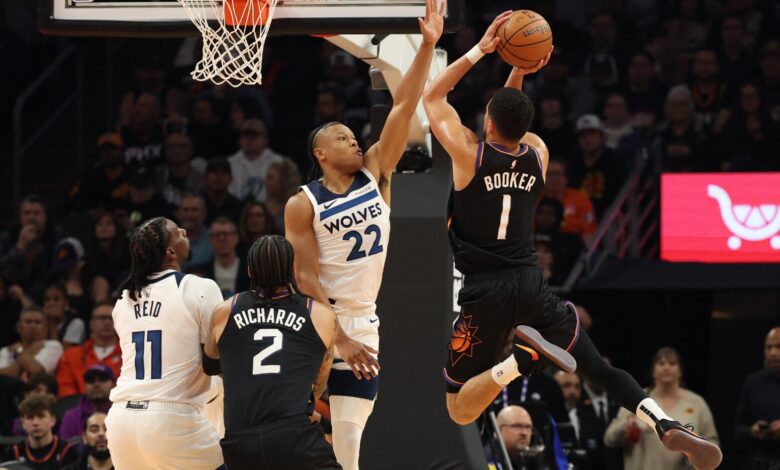 McDaniels a obrana Wolves, která se datuje od play-off Minnesoty s Phoenixem v roce 2024, mají i nadále Bookerovo číslo.