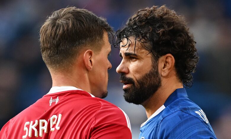 Diego Costa může být v důchodu, ale neztratil žádný z oheň, který ukázal ve svých hracích dnech, a kopl na bývalé liverpool pravý zpět Martin Kelly v zápase Chelsea vs Liverpool Legends.