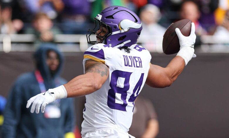 Vikings ‚Cam Akers hodí TD Pass Josh Oliveru