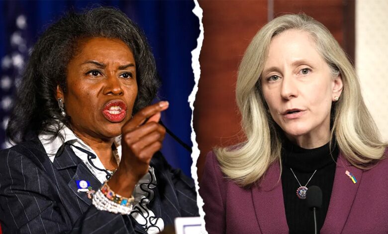 Virginia Lt. Gov. Winsome Earle-Sears, republikán, vlevo, běží proti demokratu Abigail Spanberger, vpravo, v závodě guvernéra státu v roce 2025. (Kristen Zeis/The Washington Post přes Getty Images; Kevin Dietsch/Getty Images)