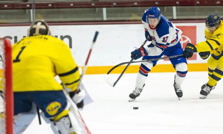 V obou hrách týmu USA USA v pondělí nebyly obavy, že v obou hrách týmu USA hostinští Američané povolili pozdní cíle a prohráli. Větší obavy, na trenéra Bob Motzko, byly ztráty jako útočník Trevor Connelly, kterému bylo v první hře v první hře v první hře v první hře pomoci z ledu, se zjevným zraněním dolního těla v týmu USA Blue.
