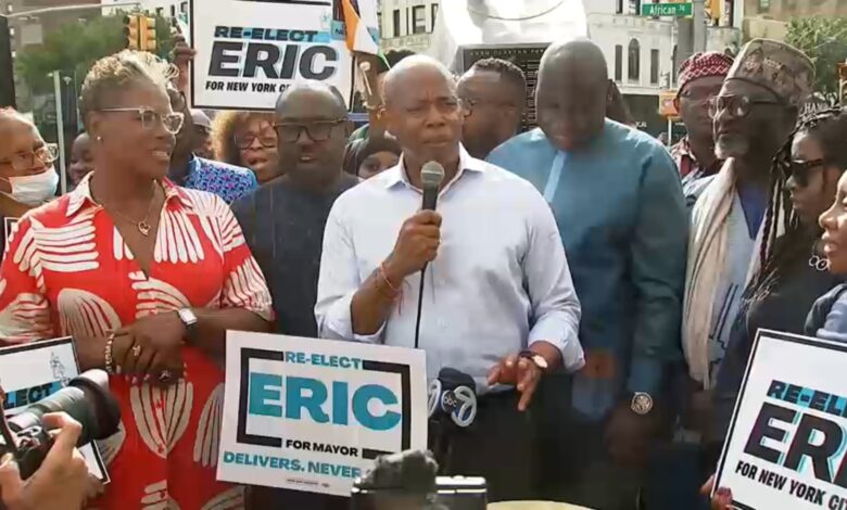 S potvrzením pro africkou radu v New Yorku se Adams podíval na podporu v Harlemu. Tento víkend se konkrétně nezabýval násilím zbraní ve městě, ale zmínil se o jeho policejní zkušenosti hlídající ulice a metro.